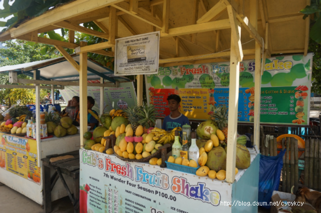 이곳에서 밴으로 갈아타기 전에 목이 너무 말라 생과일주스를 찾아보았다.