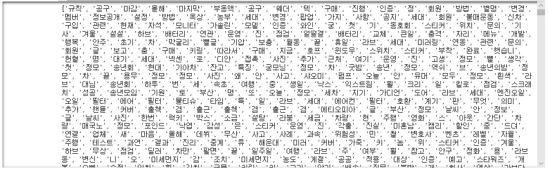 뭐, 고수들은 여기서 바로 이어서 워드 클라우드까지 가겠지만, 전 그 방법을 아직 못 찾아서..