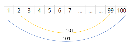 1부터 100까지 나열해 둔 상태에서 처음수와 마지막수을 더한 결과 101을 50번 곱해주는 방법도 있겠네요!