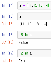 in - a 리스트에 값이 있는지 없는지를 확인 후 False or True를 리턴 합니다.