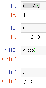 pop - a 리스트에서 ( ) 안의 번지값을 빼내오며, 해당 값을 리턴 합니다.