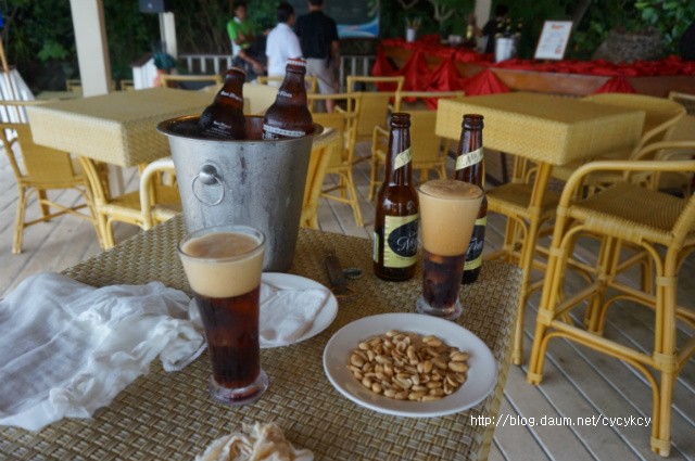 우린, 비도 오겠다, 숙소에만 있기 심심하여 이벤트를 준비하고 있던 홀로 향했다. 그곳에서 맥주를 한 바켓 시켜놓도 홀짝홀짝 마시며 준비하는 직원들을 구경했다.