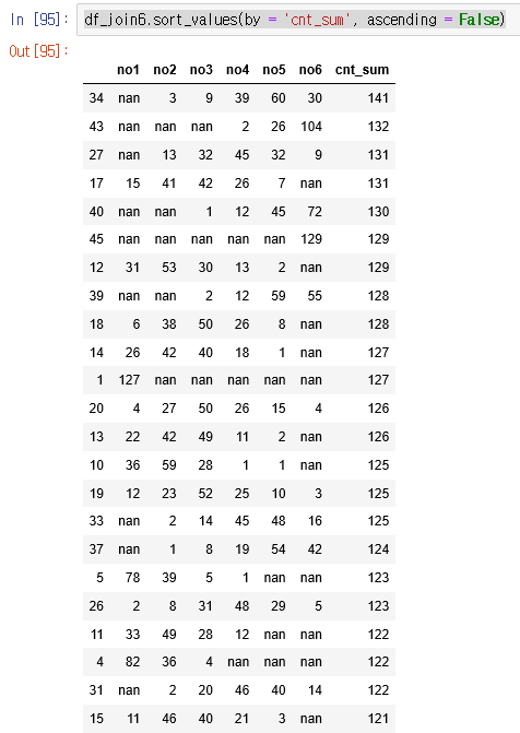 여기에서 fillna(0)을 호출한 이유는 위 데이터를 보시면 알겠지만 nan으로 된 빈값들이 있어서 해당 값을 0으로 치환 하겠다는 의미로 쓰입니다. 그래야 더해질수 있을테닌깐요.