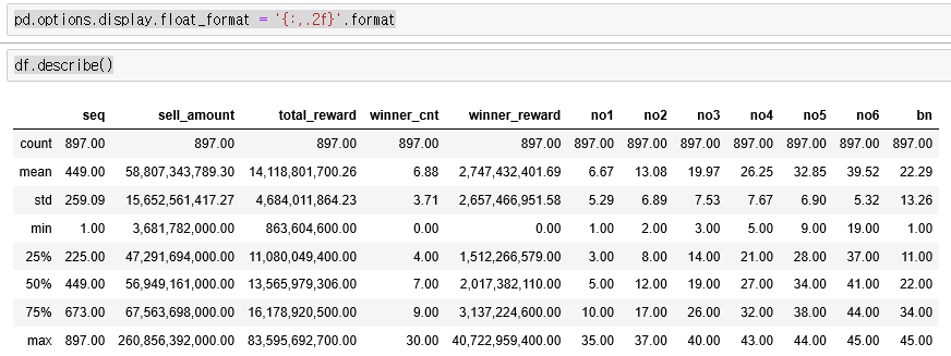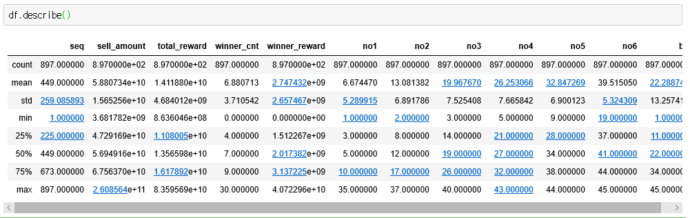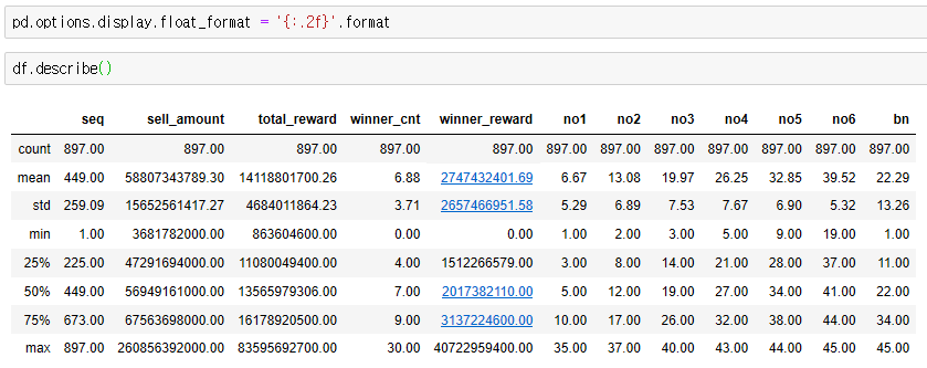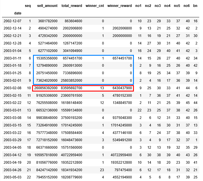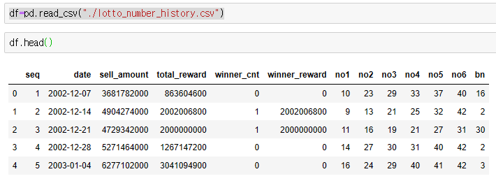로또 1등 당첨번호 및 당첨금에 대한 데이터는 이전에 포스팅했던 로또 당첨번호 및 당첨금 데이터 크롤링 한걸 엑셀 파일로 저장 하는 포스팅을 했었는데 거기서 저장 한 데이터를 이용 했습니다.