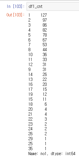 그럼 이걸 가지고 각각 데이터셋에 어떤번호가 몇번 나왔는지 group by count를 해줍니다.