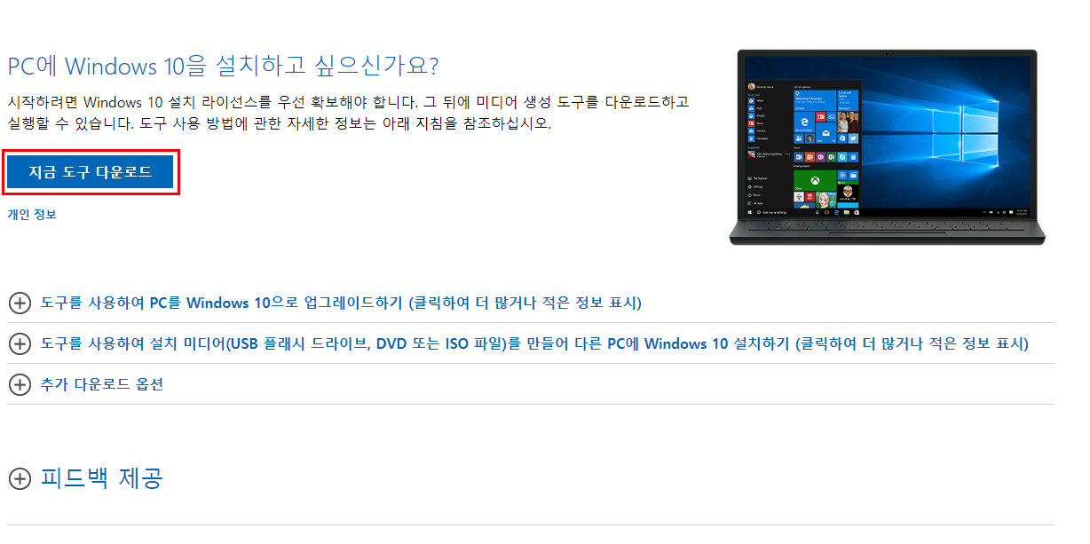 2. 아래 주소에 들어가서 아래와 같이 생긴 <지금 도구 다운로드> 를 클릭 합니다.