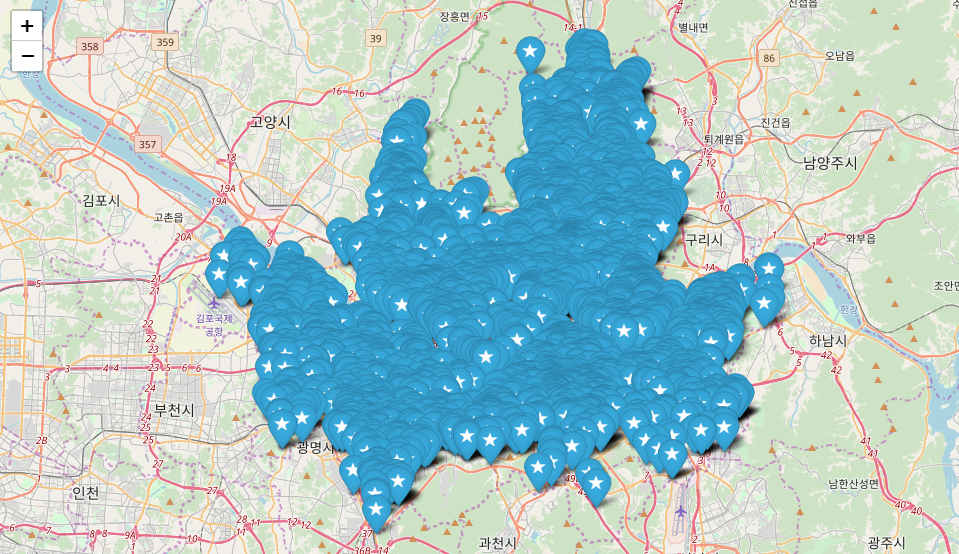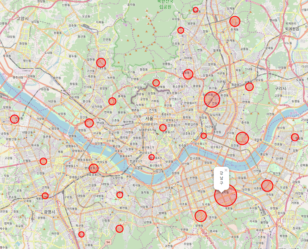 누군가 댓글로 지도 위에 시각화하는 것을 추천해주셔서 저도 첨으로 도전을 해봤습니다.