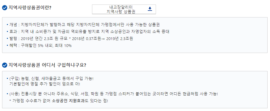 위에서 말씀드린 지역사랑 상품권은 지자체에서 발행하고, 해당 지역의 가맹점에서 사용이 가능한 상품권 입니다. 지급을 받는 당사자와 더불어 자신이 거주하는 지역의 소상공인과 자영업자까지 고려한 정책이라고 보면 될 것 같습니다. 보통 지역사랑상품권은 지역 시장, 슈퍼마켓, 학원, 병원, 서점 등에서 사용이 가능합니다.