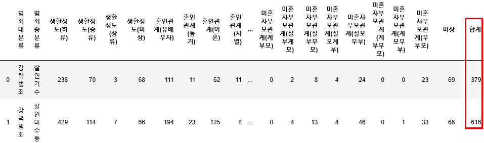 crime['혼인_합계'] = crime['혼인관계(유배우자)']+crime['혼인관계(동거)']+crime['혼인관계(이혼)']+crime['혼인관계(사별)']