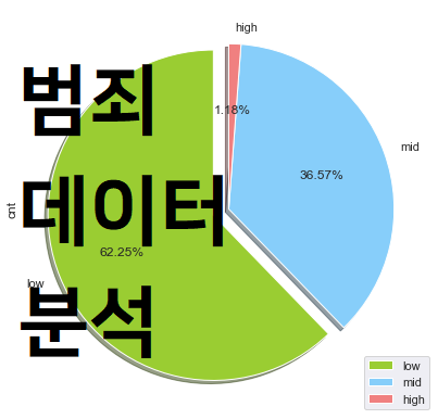 8. 파이형 그래프로 생활수준별 범죄 비율을 그려봅니다.
