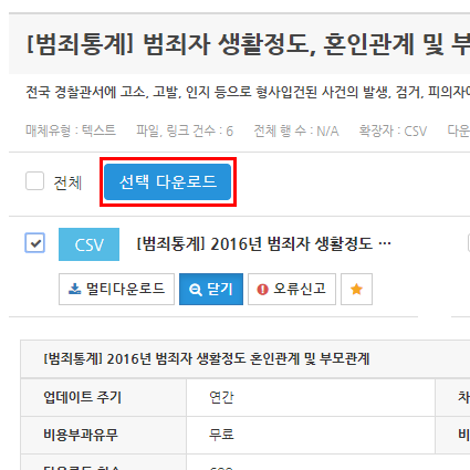 데이터는 공공데이터 포털에서 가지고 왔습니다. 위 링크를 타고 들어가서 아래와 그림과 같이 파일을 다운로드하시면 됩니다.