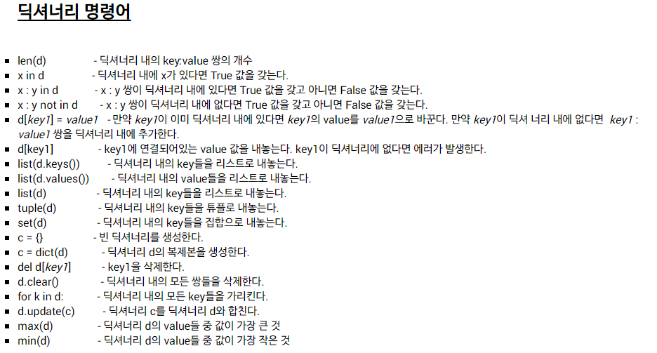 딕셔너리에는 위와 같은 명령어들이 있습니다.