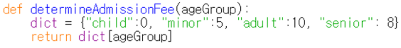 딕셔너리는 긴 if-elif 문장을 간단하게 만들어주는 장점이 있습니다. 예를 들어 아래와 같은 코드가 있다고 합니다.