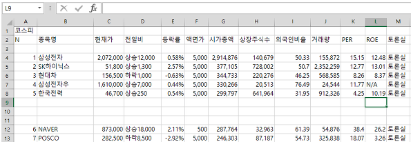 네이버 주식 데이터를 엑셀로 한번에 가져오기