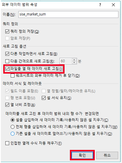 4. 외부 데이터 가져오기 설정 완료 화면 및 추가 작업