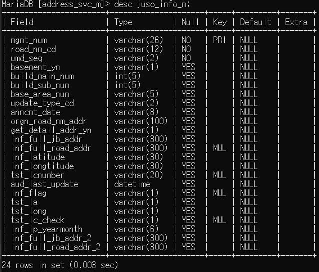 그리고 아래와 같이 DESC 명령을 통해서 테이블 칼럼 목록을 확인합니다.