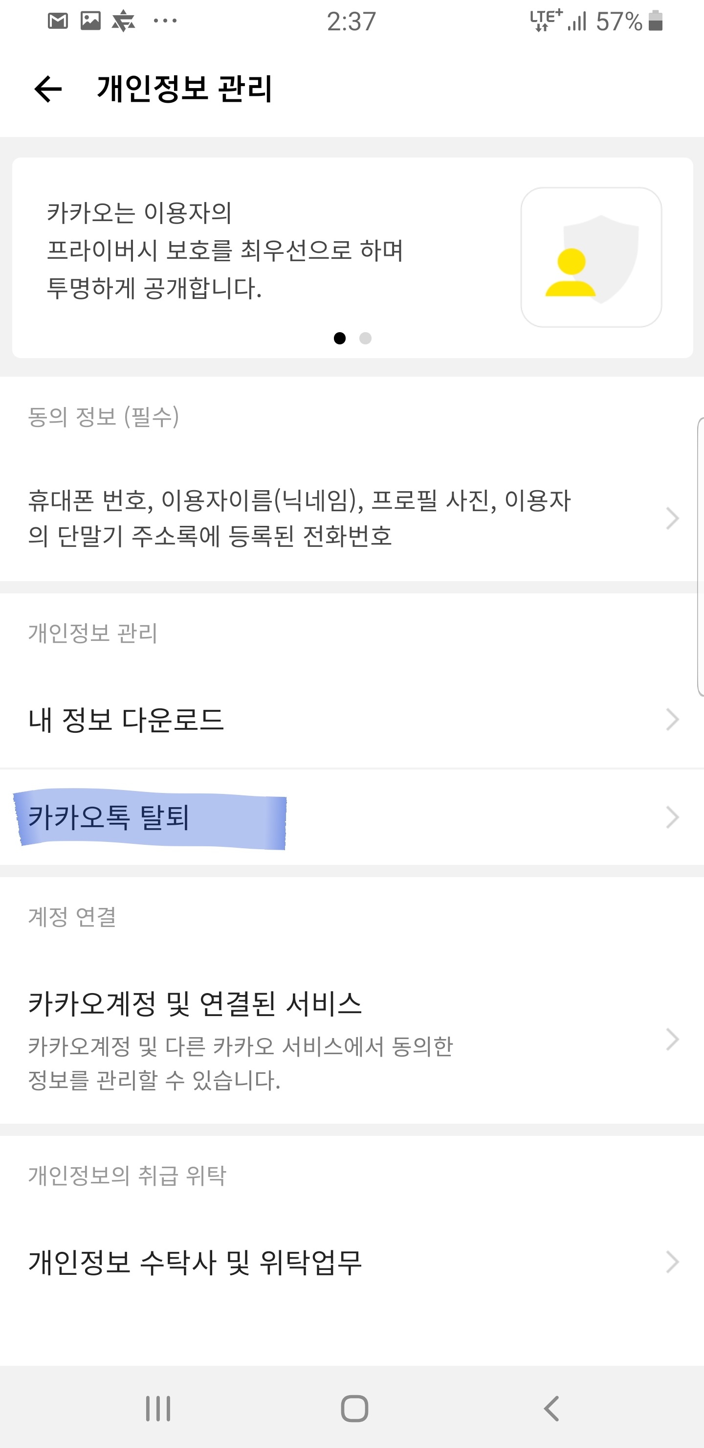 카카오톡을 탈퇴하시려고 하시나요?