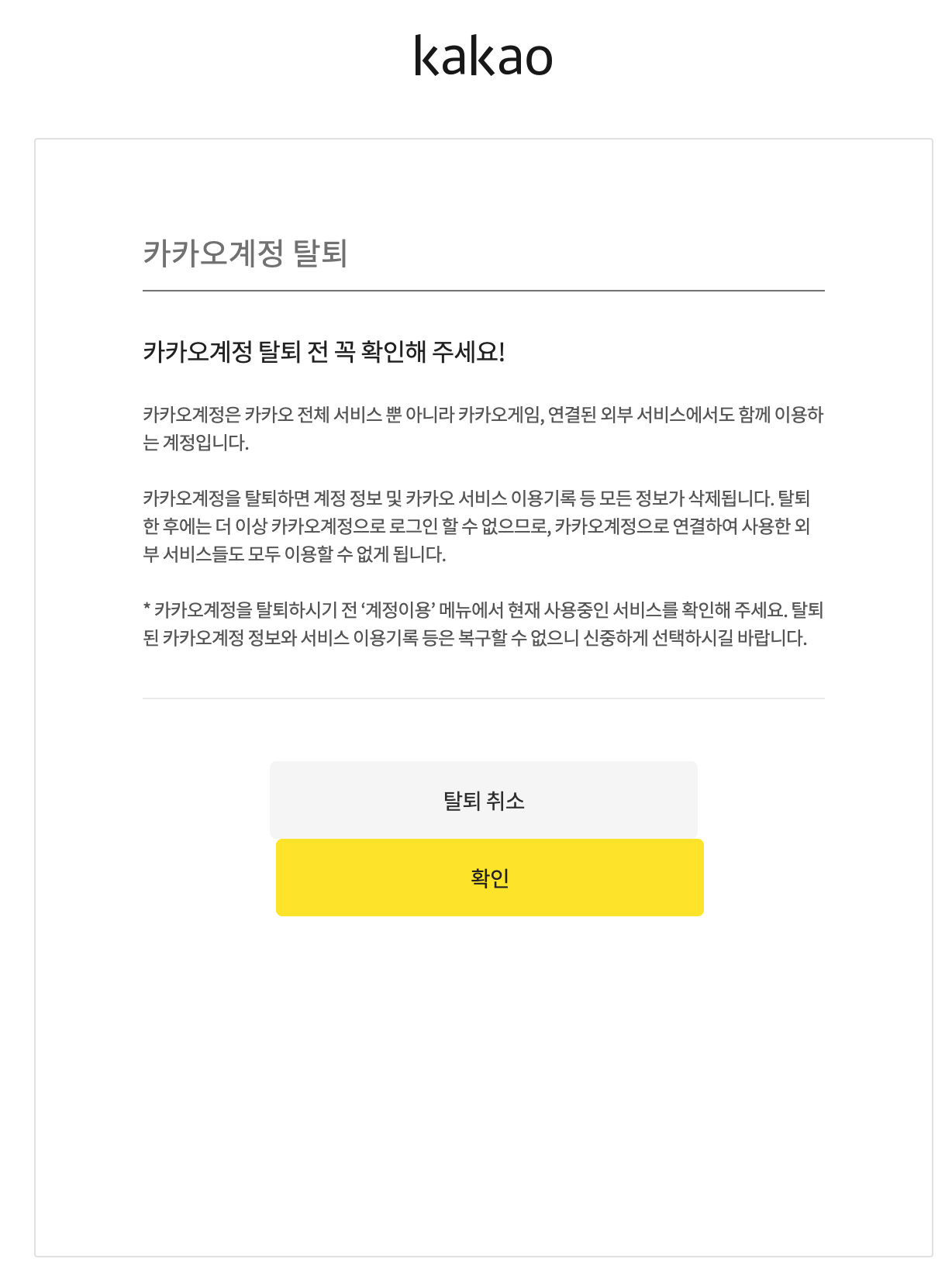 카카오톡 카카오계정 탈퇴하기, 주의사항