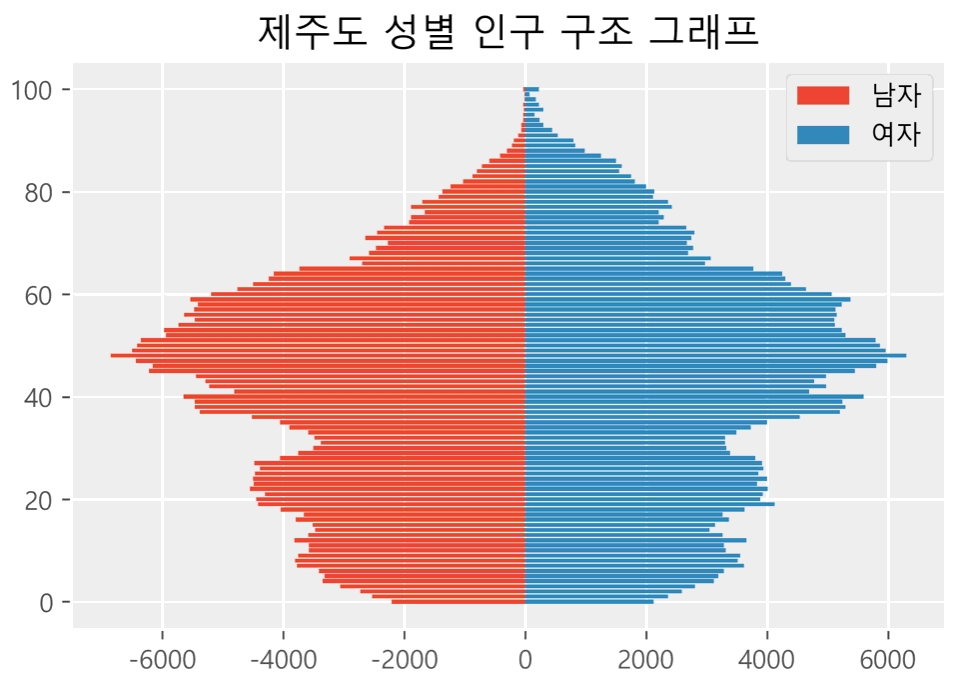 plt.title('제주도 성별 인구 구조 그래프')