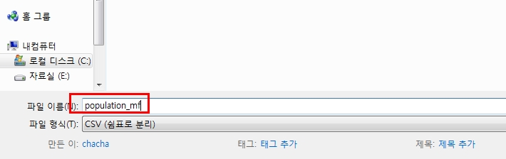 그러고 나서 아래 csv 파일 다운로드를 누르면 우리가 필요한 인구 데이터를 다운로드할 수 있습니다.