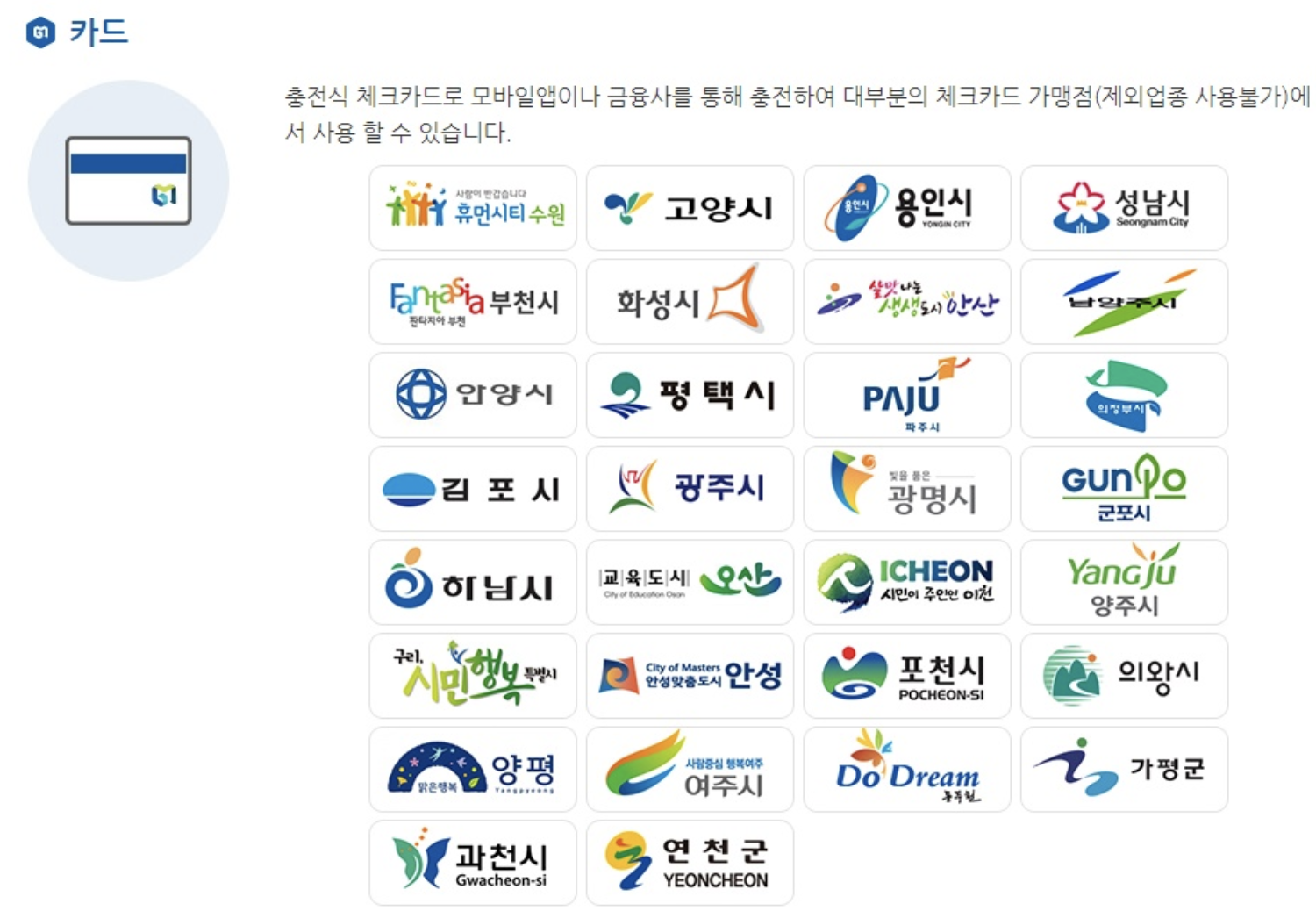 경기지역화폐 카드는 경기도내 28개의 시군에서 사용이 가능 합니다.(2020년 3월27일 현재)