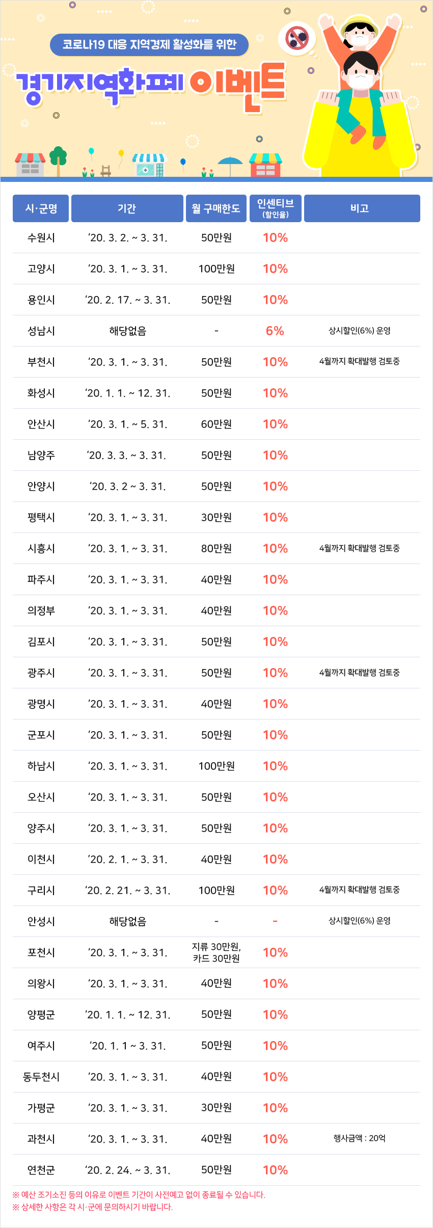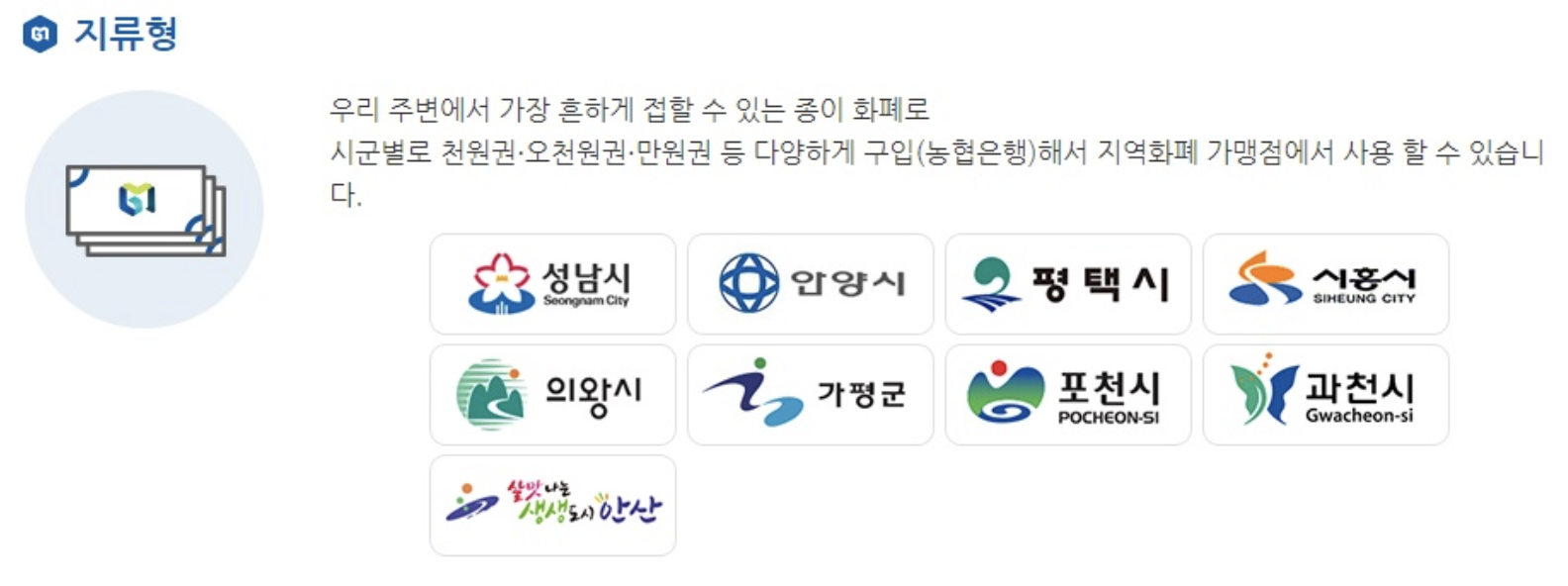 2. 각 시군구 별로 지역화폐 충전 구매시 10% 할인 혜택을 받으실수 있습니다.