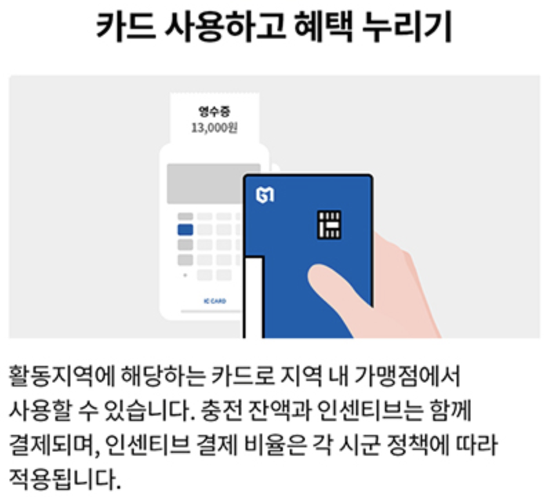 1. 경기지역화폐카드를 발급 받으시면 일반적으로 체크카드 사용이 가능한 가맹점에서 사용 하실때 편리하게 사용 하실수 있습니다.