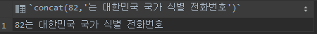 select concat(82,'는 대한민국 국가 식별 전화번호') from dual;