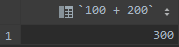 100과 200을 더하는 SQL 명령입니다. 100, 200 모두 숫자로 입력을 했습니다. 당연히 결괏값 300이 출력됩니다.