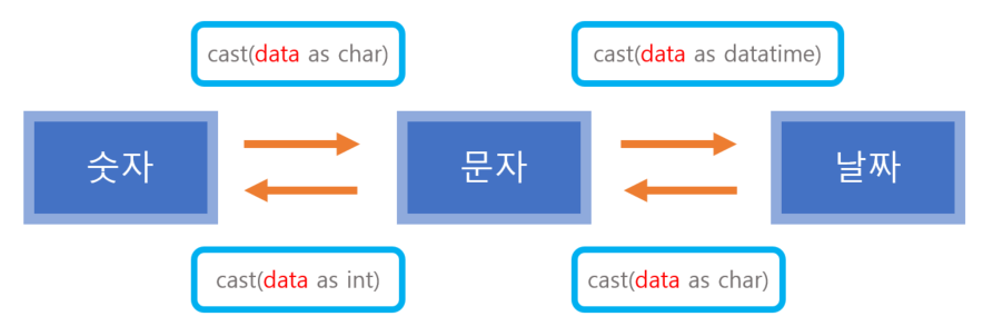 CAST 함수란 mysql에서 데이터 타입을 서로 변환시켜주는 형 변환 함수입니다. 사용법은 아주 간단합니다.