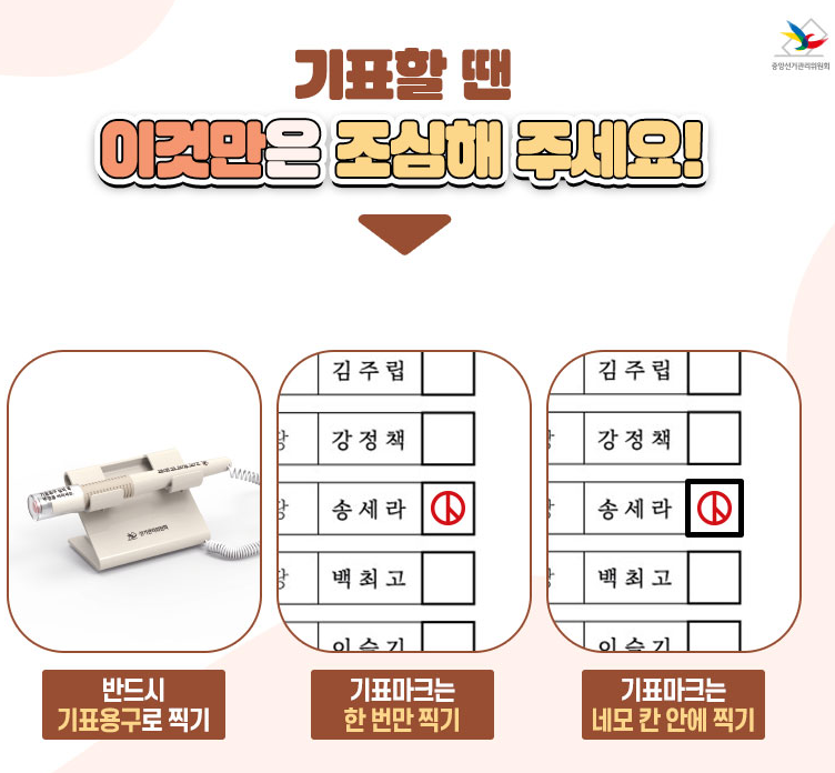 기표시 주의사항을 잘지켜서 소중한 한표의 권리도 꼭 지키시길 바랍니다.