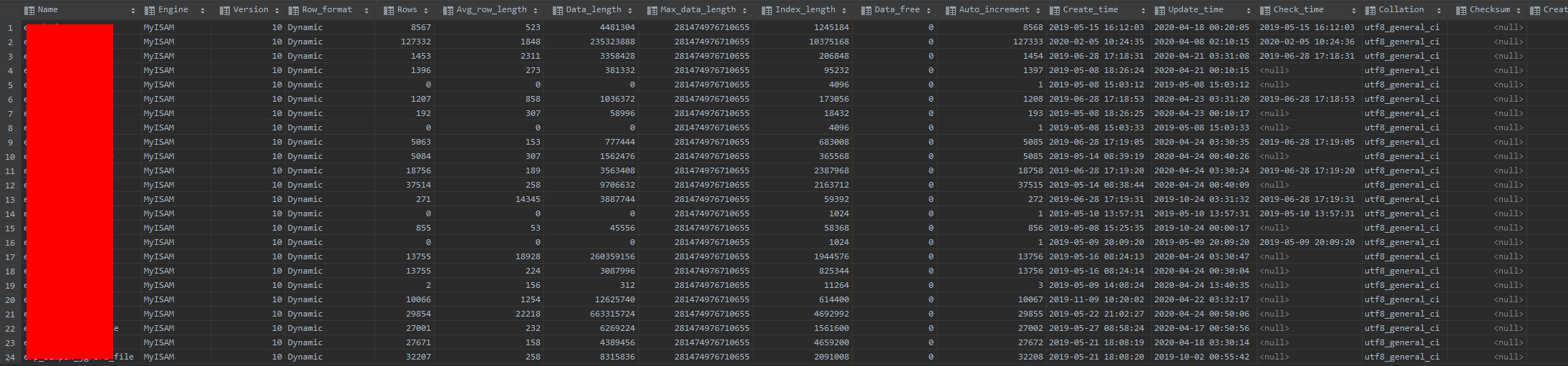 SHOW TABLE STATUS;