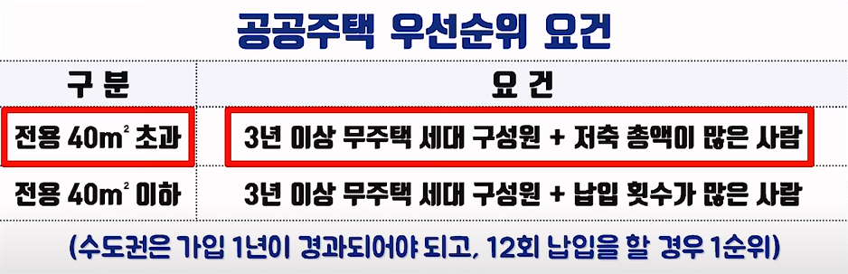 여기에서 24개월, 24회 이상을 만족하는 사람들이 많을 텐데, 이를 가릴 우선순위 요건이 있습니다. 그 우선순위 요건은 아래와 같습니다.