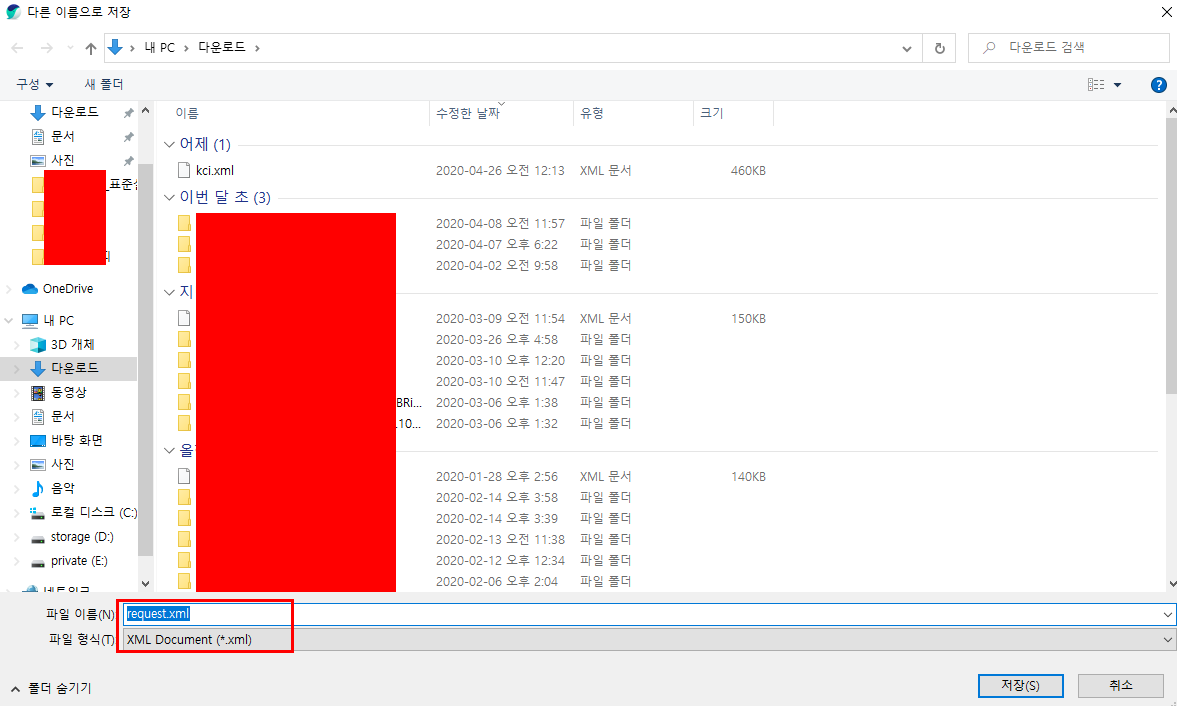 XML 형식으로 나오네요. 이것을 xml 파일로 저장을 합니다.