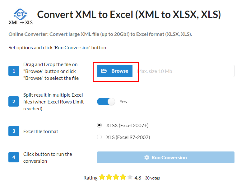 xml to 엑셀 파일 변환을 하기 위해서 아래 사이트를 찾았습니다.