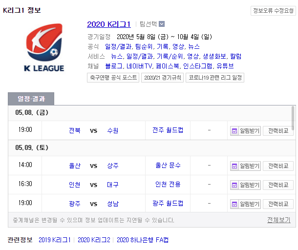 2020K리그 개막 무관중 일정 및 세부 내용