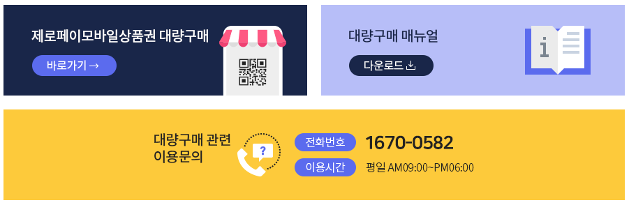 대량 구매와 관련된 문의는 평일 오전 9시부터 오후 6시까지 1670-0582번으로 문의하시면 자세한 안내를 받으실 수 있습니다.