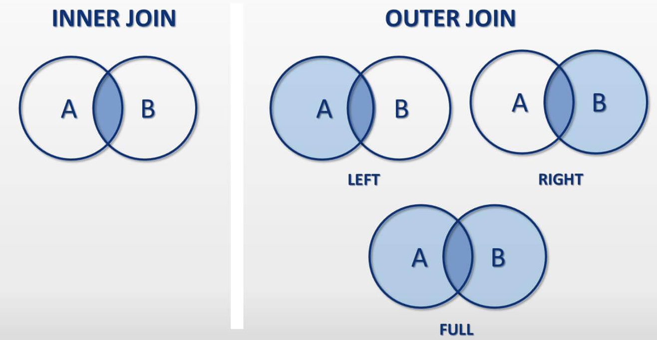 inner join의 경우 A 와 B 두 테이블을 join 할시에 양쪽에 key값을 기준으로 모두 존재하는 데이터만 출력이 되지만, outer join은 한쪽을 기준으로 하여 다른 쪽에 key값이 일치하는 게 없더라도 모두 출력을 하는 join 기법입니다.