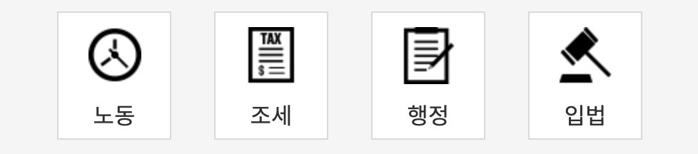 위와 같이 노동, 조세, 행정, 입법 정보 역시 보여주고 있습니다.