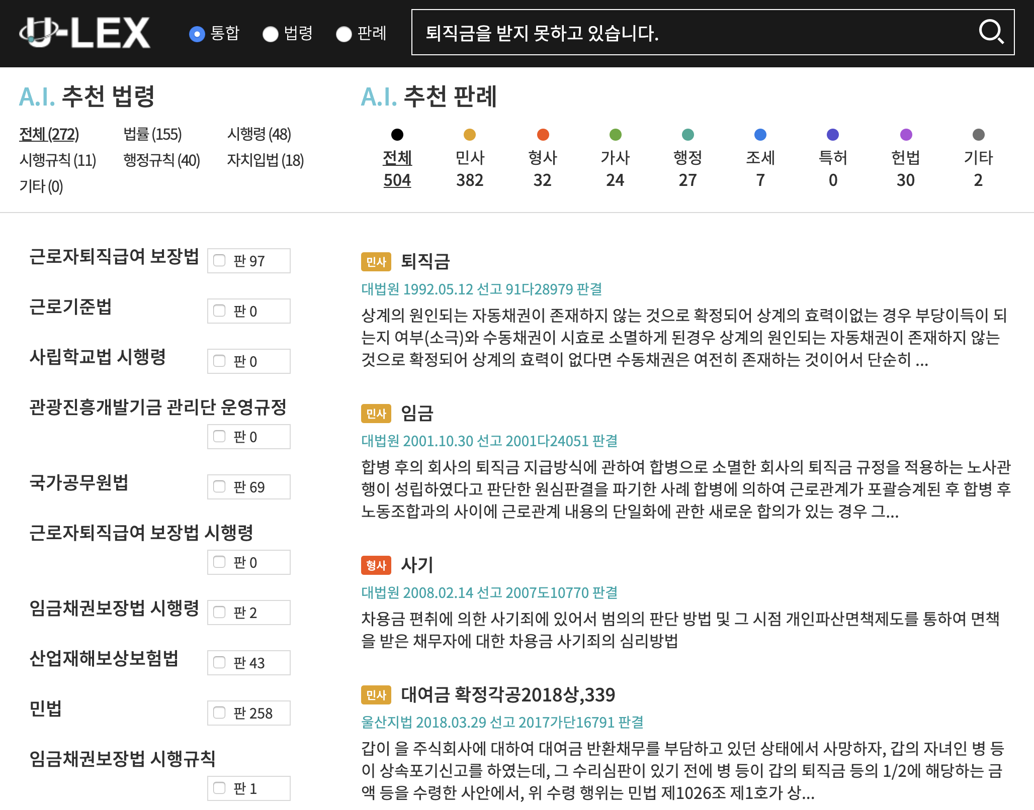 바로 ULEX입니다. 유렉스는 일반인들이 법령과 더불어서 판례를 쉽고 빠르게 검색할 수 있는 웹 서비스입니다.