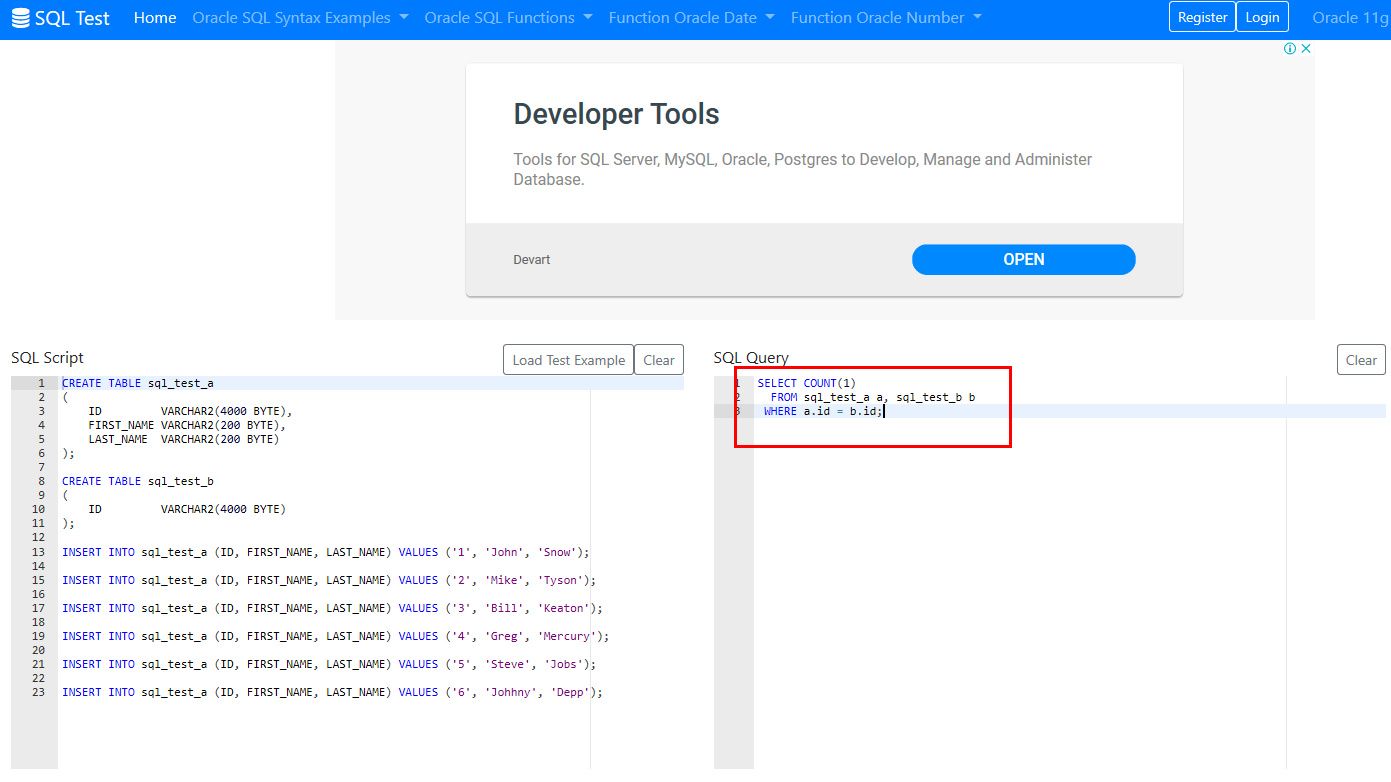 FROM sql_test_a a, sql_test_b b