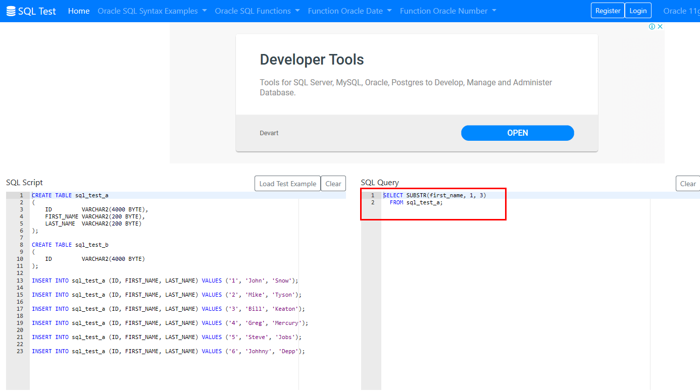 SUBSTR Function의 사용 예제가 나오네요.