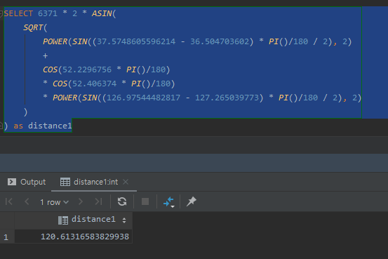 SQL을 이용해서 위경도 좌표 사이의 거리를 구할 수 있다는 것이 좀 신기 하긴 합니다.