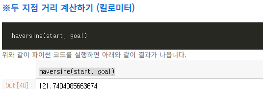 사실 120km에서 1km의 오차라면.. 음 생각보단 크게 느껴집니다. 어느 편이 실제 거리와 더 가까운지는 알 수 없지만, 일단 구글 맵을 기준으로 하자면 파이썬의 haversine 라이브러리가 더 실제 거리와 가깝게 느껴집니다.