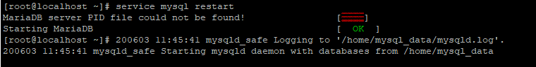 MariaDB server PID file could not be found!