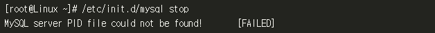 MySQL/MariaDB 데몬의 PID 값을 가지고 있는 파일이 없어서 일어나는 현상입니다. 어느 데몬을 죽여야 할지 알 수 없기 때문이지요.