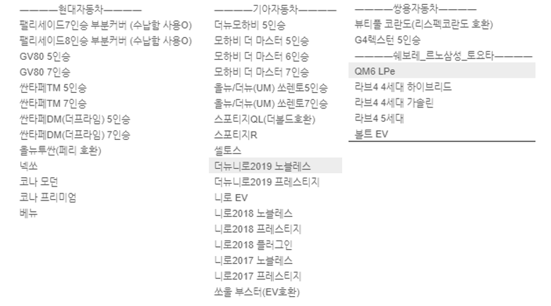 도요타 RAV4는 물론 아래 나열된 자동차들의 트렁크 풀커버를 모두 판매중 입니다. 참고하시기 바랍니다.