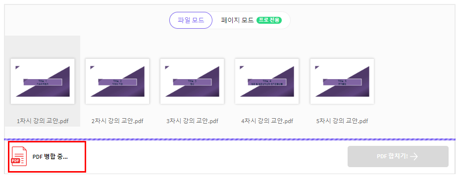 그러면 아래와 같이 PDF 합치기가 진행 중이라는 문구가 표시됩니다.