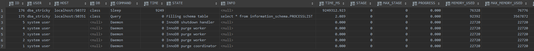 select * from information_schema.PROCESSLIST