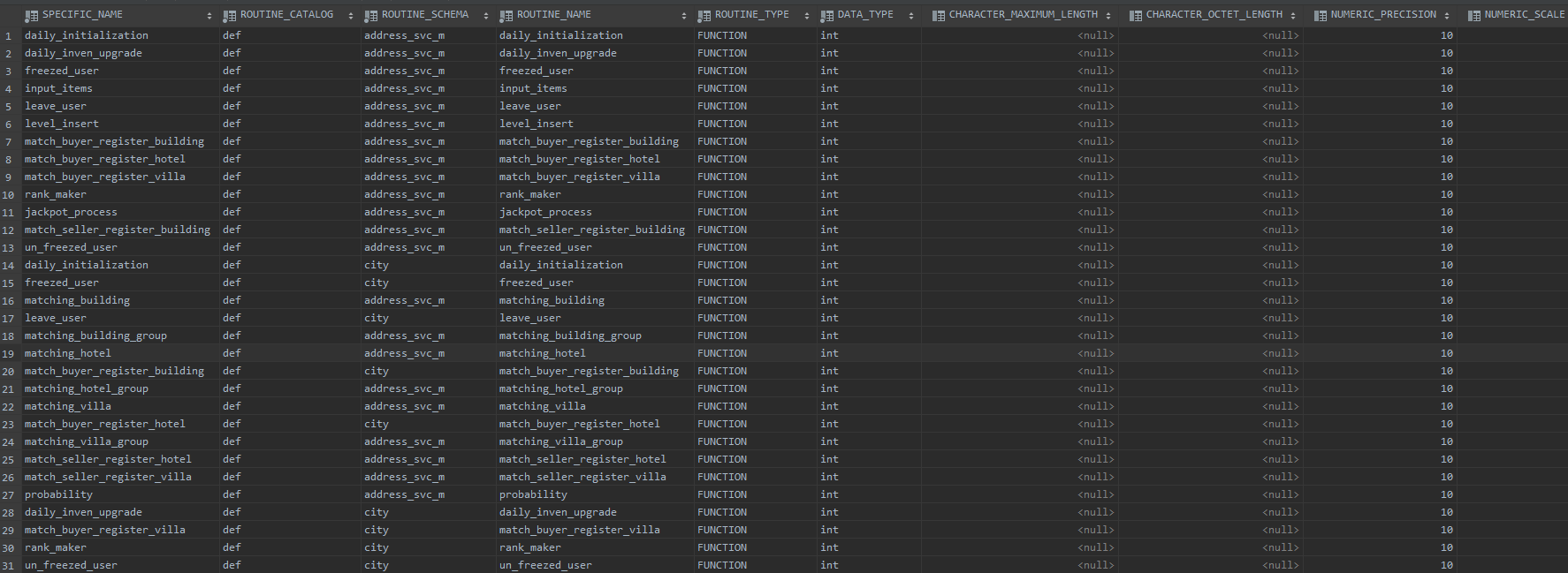 select * from information_schema.ROUTINES